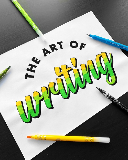 I use a wide range of tools in my lettering depending on the project. My artistic work is mostly paint and brush but its always underpinned by sketches on paper with pencil. Brush pens have been a huge part of my creative process when it comes to logo designs and continue to be still today.