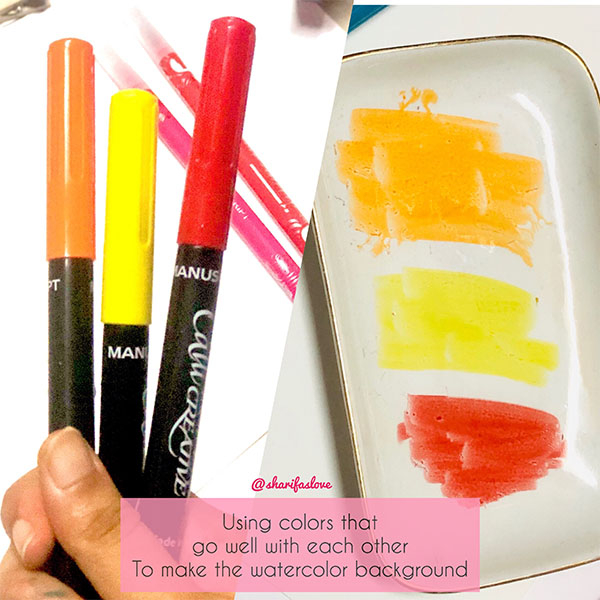 Get your materials ready which includes your paper and pens. I have used Red, Yellow and Orange Aquabrush Markers and Red, Yellow and Orange Duotip Markers but you are welcome to choose the colours you want.
